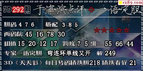 3D 《天天彩》每日号码精选胆218 精选看好21
