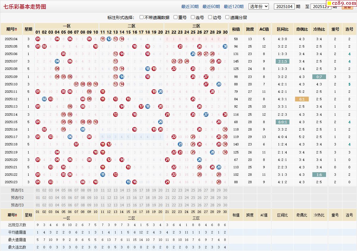 首页 > 七乐彩预测 > 2025年124期福彩七乐彩近期走势图分析